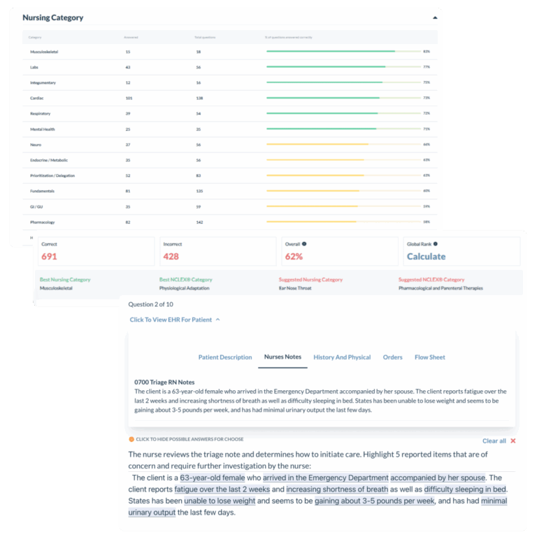 Practice with real NCLEX question formats Multiple choice, SATA, drag-and-drop, case studies—everything you'll see on test day