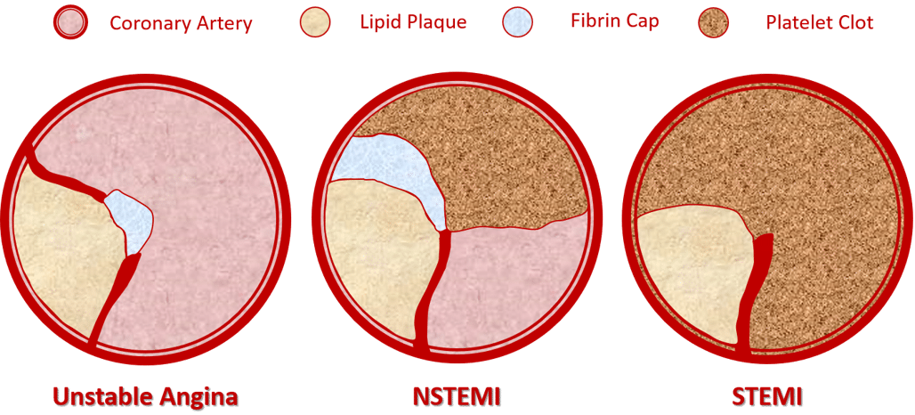 depiction of lumen in Angina, NSTEMI, STEMI
