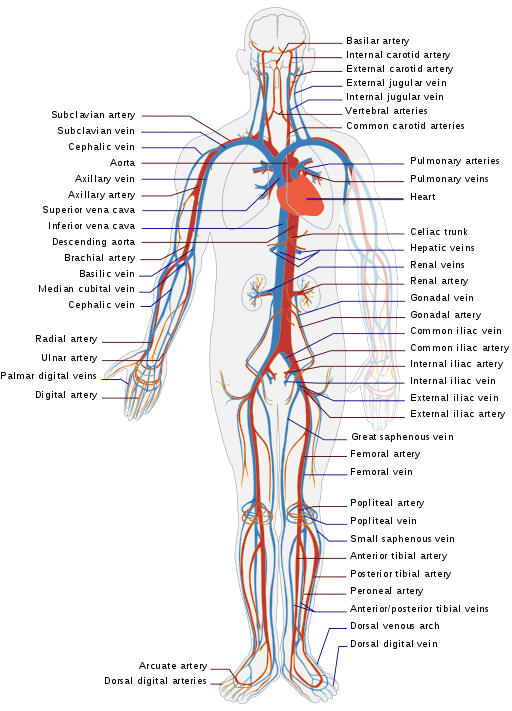 Veins and arteries run throughout the body from the heart out to the tissues to provide oxygen and nutrients to the organs