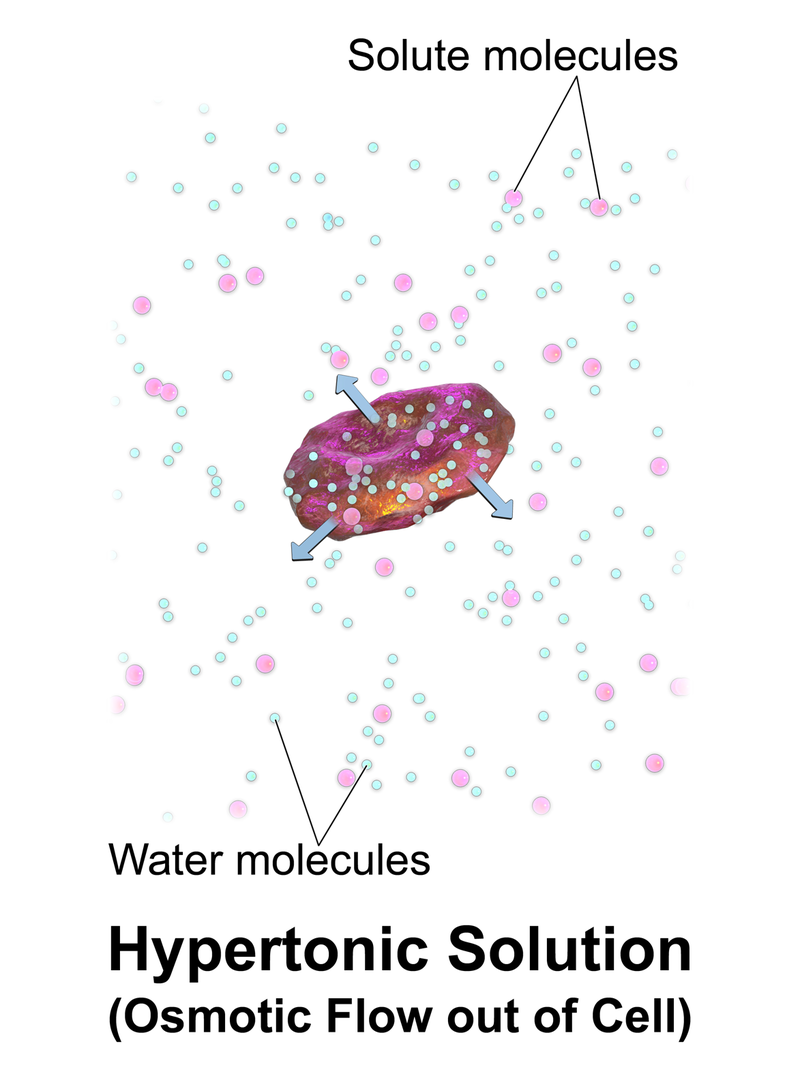 Hypertonic solutions will cause fluid to rush out of the cells, causing them to shrink and risking severe cellular dehydration