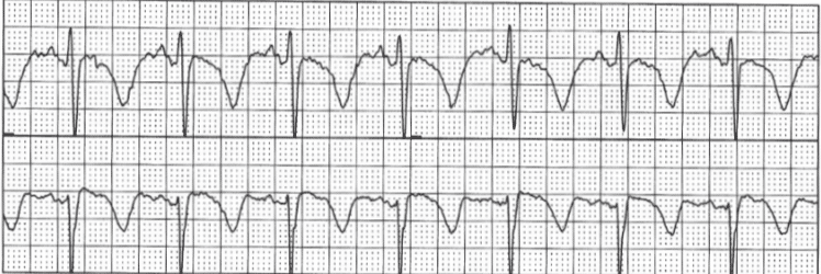 Abnormalities in potassium (usually hypokalemia) can cause EKG changes, specifically inverted (upside down) T-waves.