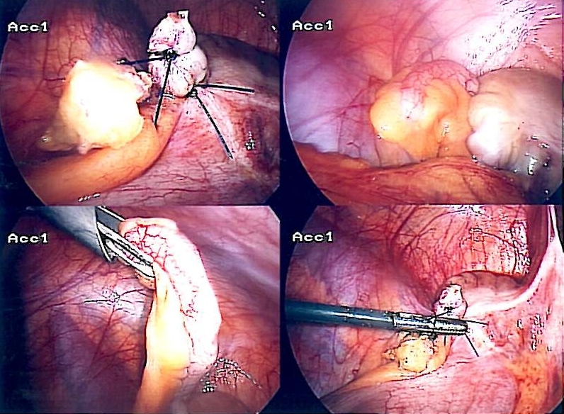 Images showing the removal of an inflamed appendix through a laparoscopic surgery