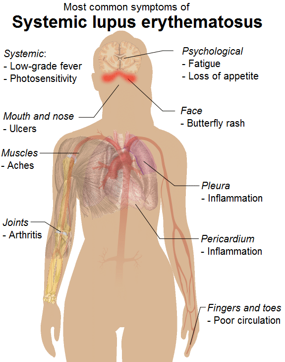 Symptoms of Lupus Erythematosus, primarily an inflammatory disorder of skin and connective tissue.