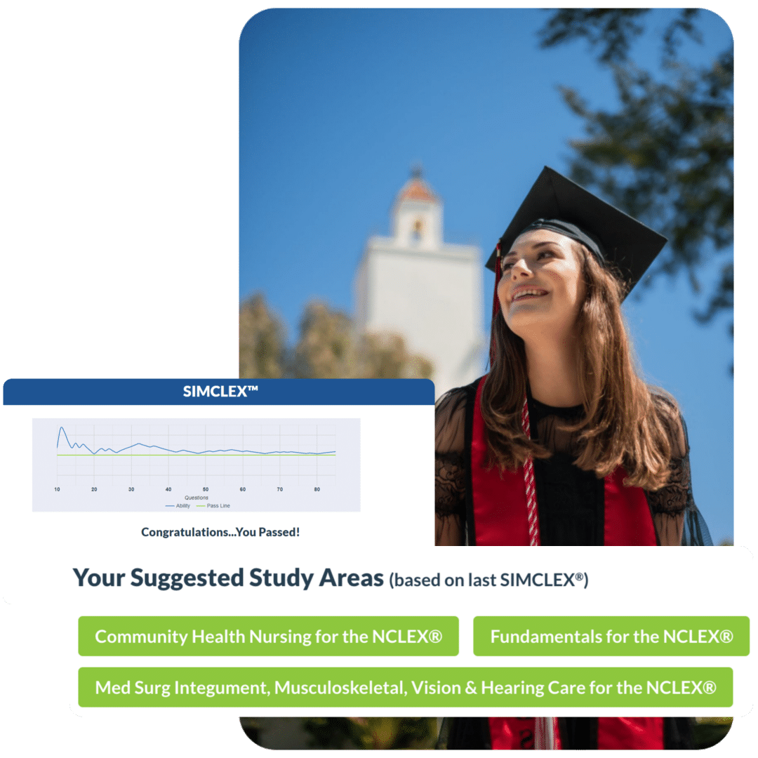99.86% of nursing students who pass a SIMCLEX® pass the NCLEX® on their first try, that's because SIMCLEX® simulates the actual computer adaptive algorithms the NCLEX® exam uses.